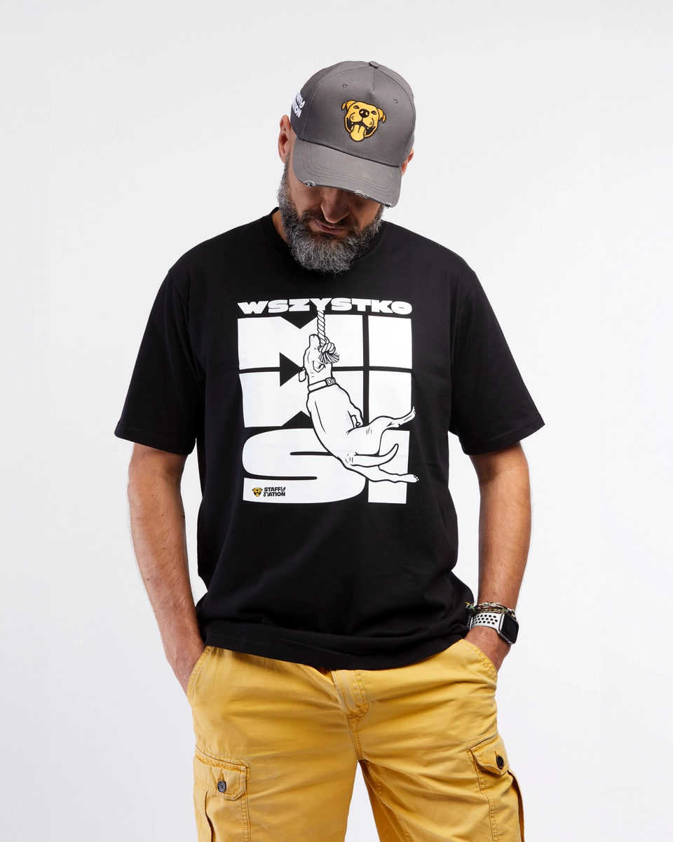 Nieważne czy jesteś zbuntowanym nastolatkiem czy bezrobotnym boomerem - w koszulce WSZYSTKO MI WISI możesz zarówno dać upust swoim emocjom, jak i pokazać miłość do Staffów Wiszących.